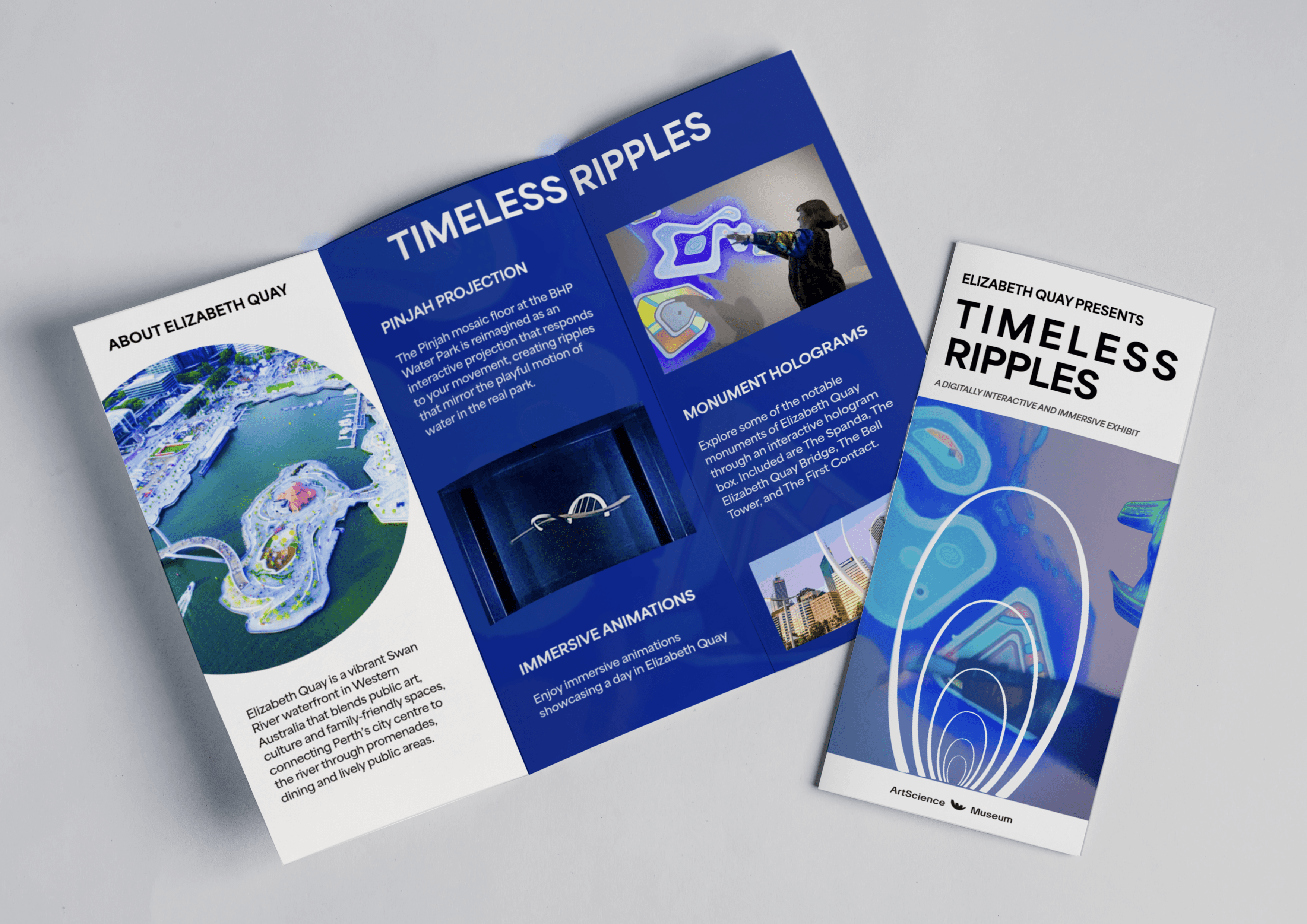 An advertising and graphic design reimagining of the Timeless Ripples project, presented as a hypothetical campaign at Singapore’s ArtScience Museum to strengthen cultural ties and tourism between Perth, Western Australia, and Singapore. Credits of 3D models made by members of the HCI team: Heidi Choo, Vaisshali Muthuraman, Marcus Yee.
